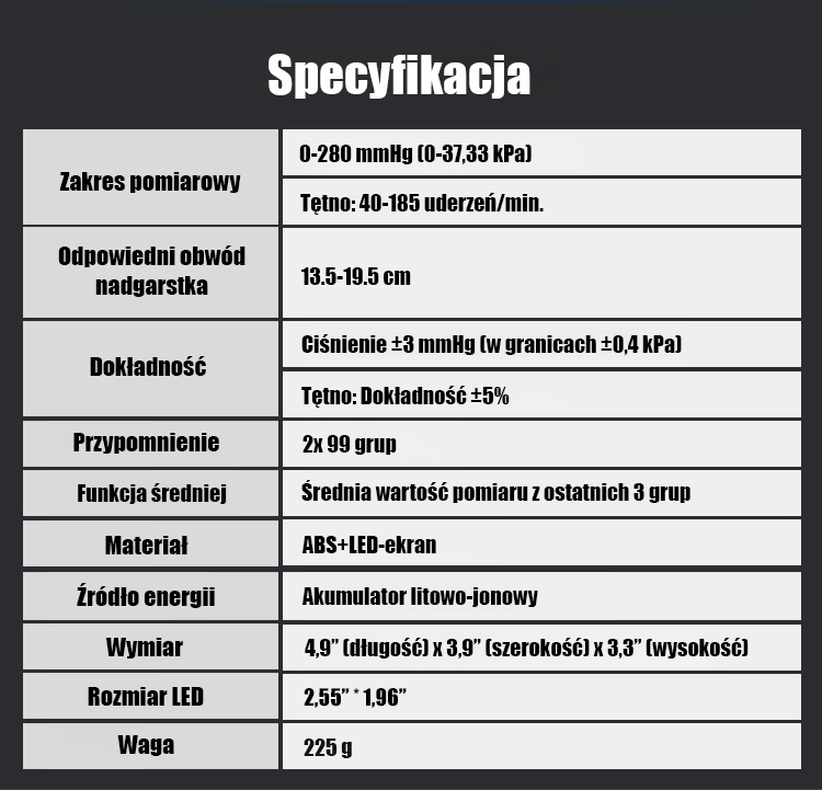 🔋 Wydajna bateria: 1 ładowanie = 200 pomiarów.