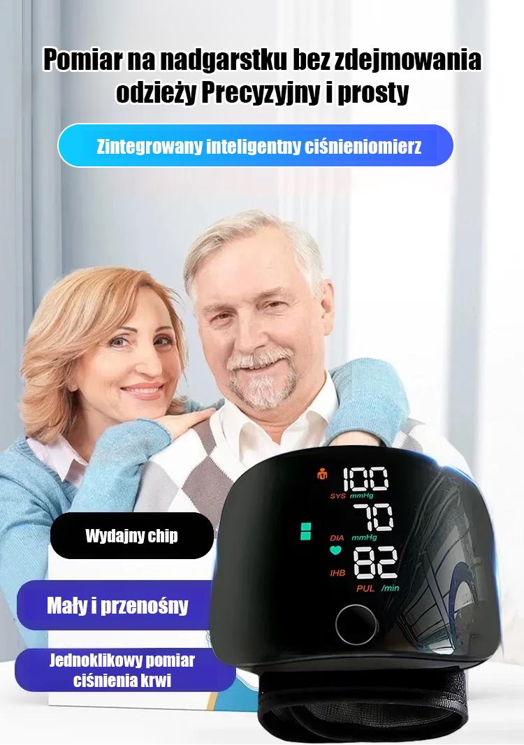 Nadgarstkowy ciśnieniomierz elektroniczny z dużym ekranem i obsługą głosową